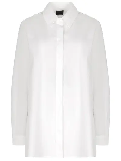 -Белая рубашка из хлопка от PERSONA BY MARINA RINALDI. -Модель свободного кроя с длинными рукавами, манжетами, отложным воротником, застежкой на пуговицы.