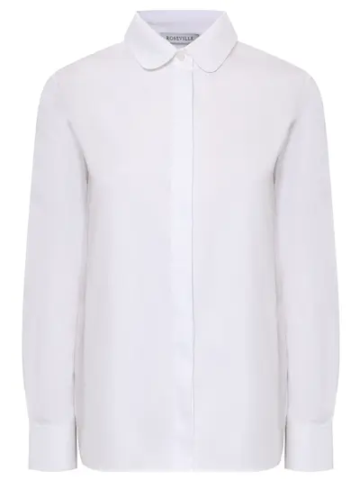 -Белая рубашка из хлопка от ROSEVILLE. -Модель прямого кроя с длинными рукавами, манжетами, отложным воротником, супатной застежкой на пуговицы. -Рубашка дополнит классические образы с брюками или юбкой.