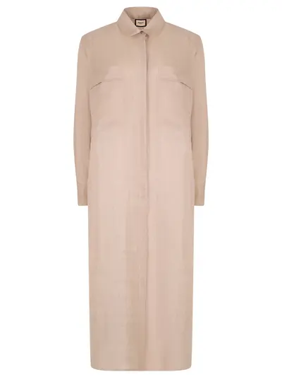-Бежевая удлиненная рубашка из легкого растительного волокна от SHATU.