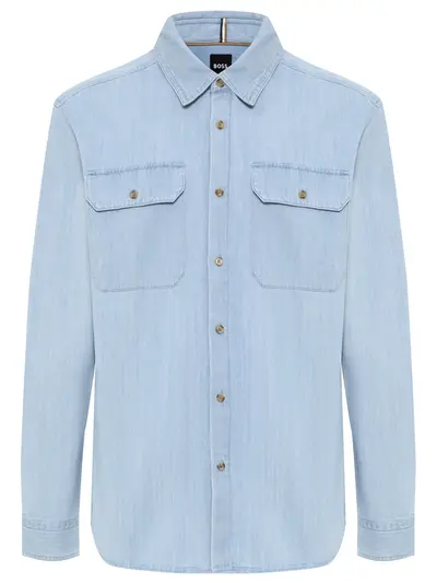 -Голубая рубашка из хлопка под деним от BOSS BLACK.