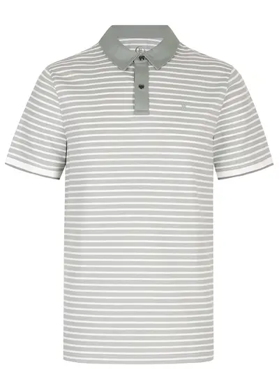 -Зеленое в полоску поло из смесового хлопка от BOGNER. -Модель прямого кроя с короткими рукавами, узкими манжетами, отложным воротником, застежкой на кнопки и логотипом бренда в тон на груди.