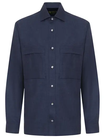 -Синяя рубашка из тонкой шерсти от PAUL&SHARK.