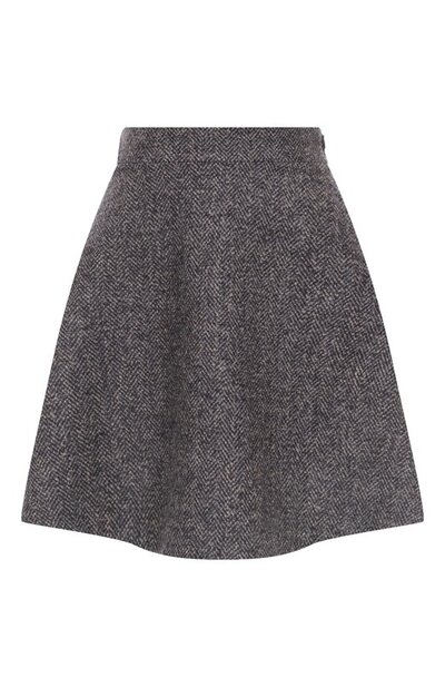 Юбку Circle с шевронным узором выполнили из шерстяного твида с добавлением нейлона. Модель с эластичной вставкой в поясе застегивается потайной молнией сбоку.