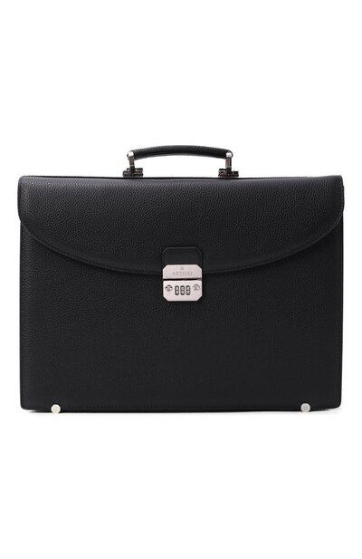Портфель Mercury с пятью отделениями, карманом на молнии и держателями письменных приборов сшит из зернистой кожи. Аксессуар с одной ручкой застегивается фирменным кодовым замком.