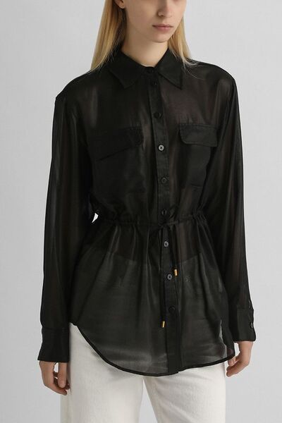 Рубашка из органзы с карманами Twin-Set 7242414 Twin-Set (чёрный, lpn30788750)