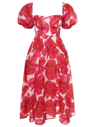 -Белое платье из легкого хлопка с цветочным принтом и 3D вышивкой от CHARO RUIZ.