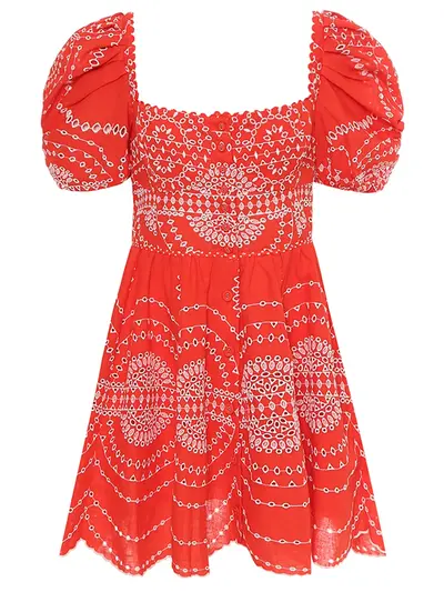 -Красное платье-мини из смесового хлопка со сплошным шитьем от CHARO RUIZ.