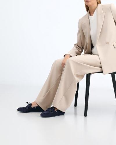 Мокасины TINSLEY от Stuart Weitzman вдохновлены традиционными лодочными туфлями. Модель из мягкой замши изготовлена мастерами в Испании. Пара отличается гибкой и легкой конструкцией. Носочная часть очерчена фактурным швом и украшена декоративной перемычкой со шнуровкой на металлических люверсах. Подкладка, стелька и подошва из натуральной кожи обеспечивают воздухопроницаемость и абсолютный комфорт.