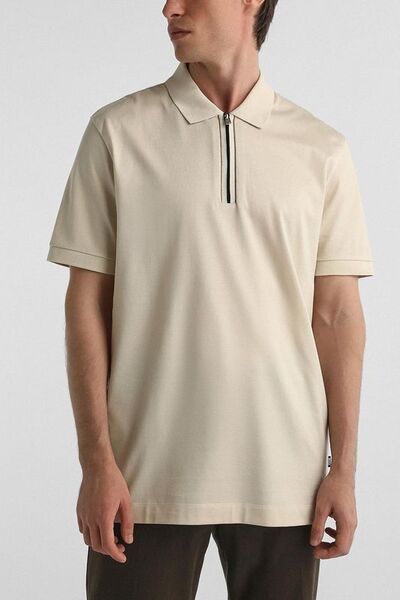 Поло хлопковое с воротником на молнии Boss by Hugo Boss 7940245 (бежевый, lpn30825688)