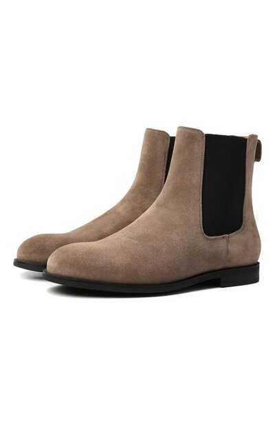 Челси Lycia с текстильным подкладом сшиты из замши. Модель с резиновой подошвой и эластичными вставками по бокам дополнена сзади петлей с тисненым логотипом марки.