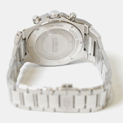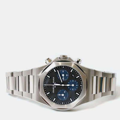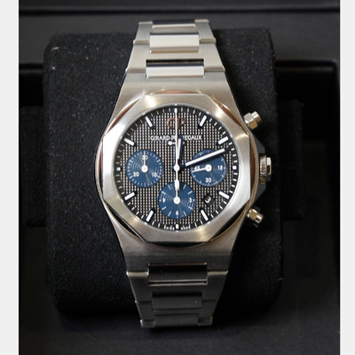 Introduced in the 1970s and perfected over decades, the Laureato remains one of Girard Perregaux’s most recognizable icons. This 42 mm model in stainless steel highlights the collection’s signature interplay of sharp lines and soft curves, with an octagonal bezel resting elegantly on a circular base. Its black dial, etched with familiar guilloché, reflects light with subtle depth, while baton markers and luminous hands ensure clarity at a glance.