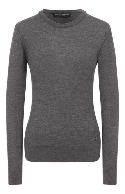 Пуловер с круглой горловиной, манжетами и поясом в рубчик связали из кашемира. Спереди модель украсили вышитой нитью в тон монограммой DG.
