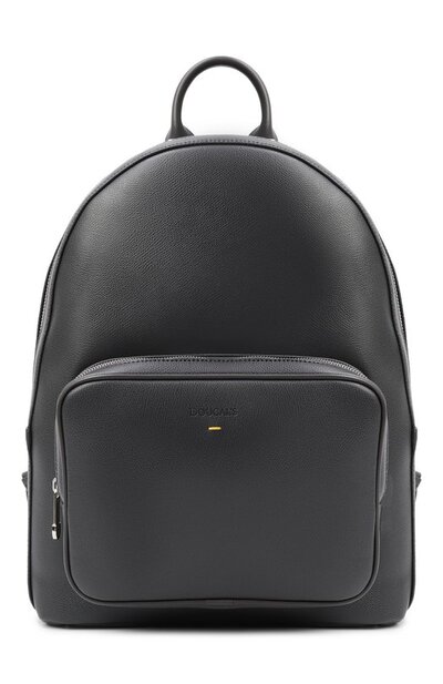 Рюкзак с текстильной отделкой на спинке выполнили из зернистой кожи. Спереди аксессуар дополнили объемным отделением на молнии, который украсили стежком фирменного желтого оттенка Golden Cream. Этому элементу вторит подкладка основного отделения с двумя накладными карманами и еще одним с застежкой.