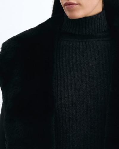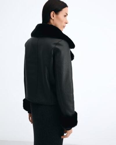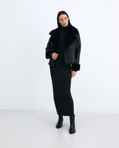 Укороченная куртка Principe di Bologna выполнена из влагостойкой экокожи и отделана мехом изнутри, на манжетах и архитектурном воротнике, который обеспечивает дополнительную защиту от холода и ветра. Застежка на двойную молнию смещена вбок. У модели вместительные боковые карманы.