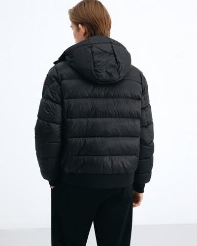 Пуховая куртка Pharrell из линейки Sheen от Parajumpers отличается простым кроем и удобной конструкцией. Материал верха — саржа из полиэстера и нейлона с водоотталкивающей пропиткой и суперпухонепроницаемым покрытием на спинке, подкладки — тафта из переработанного нейлона с матовой отделкой плотностью 20 ден. Наполнитель — 100% утиный пух. У куртки капюшон, вентиляция под мышками, ребристые манжеты и низ, два внешних кармана на молнии и внутренний карман. Рукав украшен нашивкой Parajumpers, горловина — фирменной застежкой на желтую ленту.