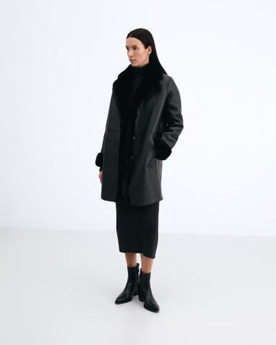 Пальто Principe di Bologna в длине миди выполнено из влагостойкой экокожи и отделано мехом изнутри, на манжетах и архитектурном английском воротнике, который обеспечивает дополнительную защиту от холода и ветра. Модель в прямом силуэте застегивается на пуговицы. По бокам расположены вместительные потайные карманы.