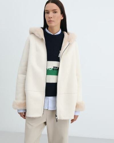 Куртка Principe di Bologna в длине миди выполнена из мягкой монохромной экокожи и отделана мехом изнутри, на манжетах и объемном капюшоне, который обеспечивает дополнительную защиту от холодца и ветра. Модель в прямом силуэте застегивается на двойную молнию.