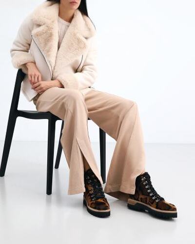 Ботинки Le Silla выполнены из ворсовой кожи с леопардовым принтом. Внутри — подкладка и стелька из натурального меха, обеспечивающие теплоизоляцию и комфорт в холодную погоду. Подошва с протектором изготовлена из легкой резины и декорирована фирменным логотипом сзади.