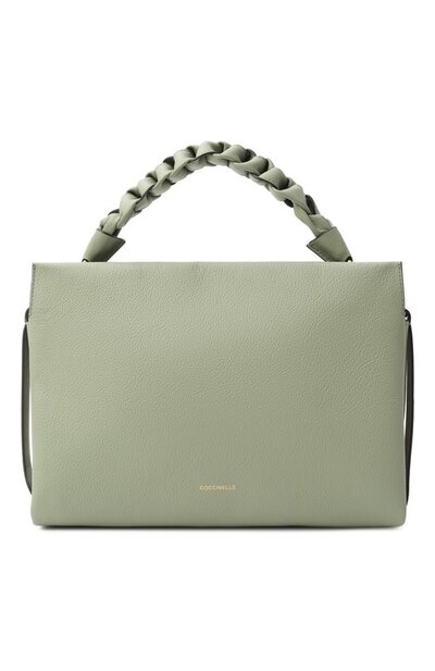 Сумку Boheme с логотипом бренда спереди сшили из зернистой кожи. Сама модель, как и один из двух внутренних карманов, застегивается молнией, а пара внешних отсеков закрываются магнитами. В комплекте — съемные плечевой ремень и плетеная ручка.