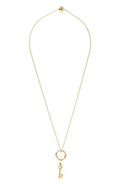 Подвеску Key Knot в виде ключа с фирменным узлом изготовили из стерлингового серебра с золотистым финишем. Аксессуар дополнили цепочкой с кнопочным замком-сферой.