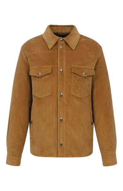 Для пошива куртки-рубашки с четырьмя карманами использовали хлопковый вельвет. Модель на кнопках украшена сзади фирменной брендированной пластиной.