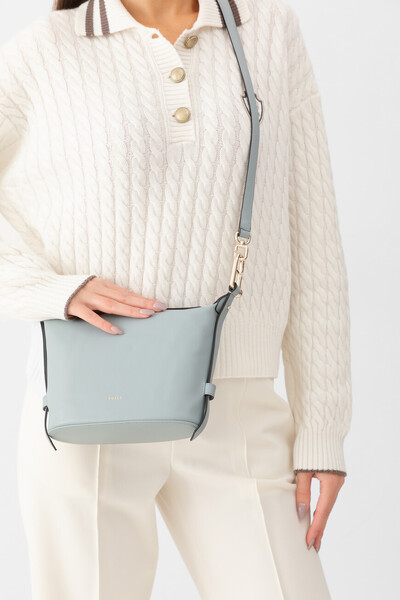 Сумка FURLA голубого оттенка с культовой символикой Дома. Изделие из мягкой натуральной кожи оснащено просторным внутренним отделением на молнии светло-золотого оттенка в верхней части. Чтобы модель можно было носить в руке или на плече, в ней предусмотрен тонкий съёмный ремень с фурнитурой Arcosfera, которая придаёт уникальность, сочетая логотип Arch со знаковым сферическим символом.