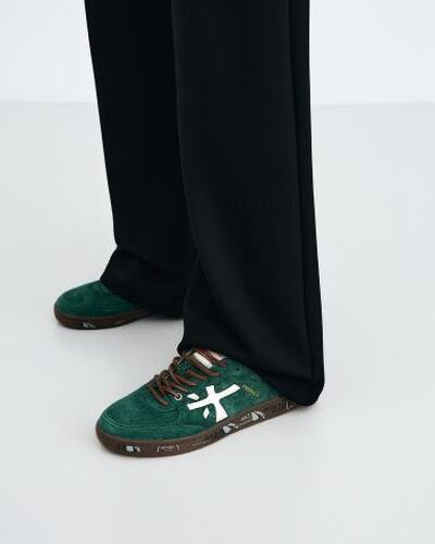 Кроссовки Premiata выполнены из тактильной замши. Мягкая подкладка и стелька из натуральной кожи обеспечивают высокую воздухопроницаемость. Контрастная резиновая подошва дополнена фирменным дизайном. Язычок, задник и боковые поверхности декорированы оригинальной эмблемой.
