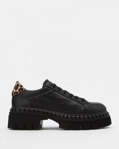 Ботинки Principe di Bologna выполнены из натуральной кожи с тиснением под аллигатора. Модель дополнена вставкой из ворсовой кожи с леопардовым принтом на заднике. Внутренняя подкладка и стелька из натурального меха обеспечивают сохранение тепла и максимальный комфорт в холодную погоду. Массивная подошва с фактурной окантовкой изготовлена из прочной резины.