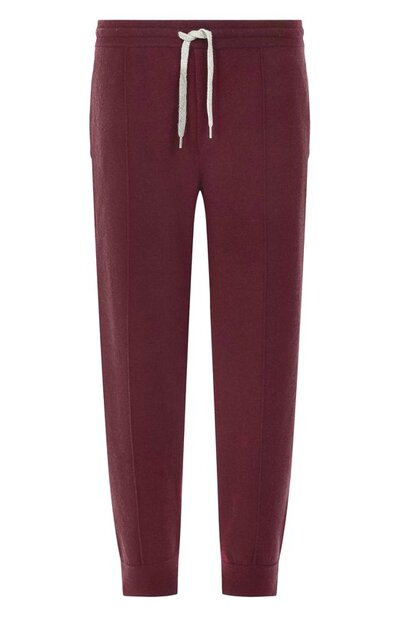 Джоггеры из линии Travelwear выполнили из двойного кашемирового трикотажа. Модель с прошитыми стрелками и короткими молниями на брючинах дополнили боковыми и задними накладными карманами.