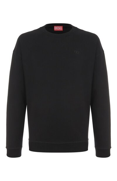 Свитшот S-Boxt-T2 со спущенной линией плеч выполнили из френч терри на основе органического хлопка и переработанного полиэстера. Модель с небольшой эмблемой Oval D на груди украсили более крупной, с декоративными потертостями сзади.