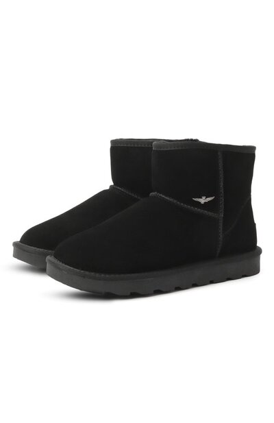 Сапоги с резиновой протекторной подошвой и коротким свободным голенищем выполнили из замши. Модель с подкладом из экомеха украшена брендированным патчем сзади и металлической эмблемой марки сбоку.