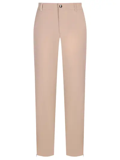 -Модель зауженного кроя со стандартной посадкой, поясом со шлевками, прорезными карманами, застежкой на молнию и пуговицу, полуманжетами в нижней части брючин и втачными молниями, которые помогают легко надеть брюки.