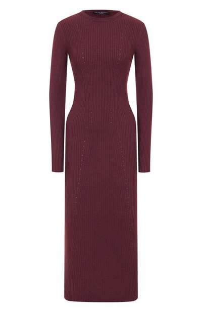 Для пошива приталенного миди-платья Stella с круглым вырезом использовали трикотаж на основе полиамида, вискозы и шерсти. Эластичную модель украсили спереди перфорированными узорами, подчеркивающими силуэт.