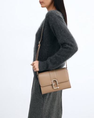 Миниатюрная сумка кросс-боди FURLA выполнена из мягкой натуральной кожи. Плечевой ремешок в тон дополнен пряжкой для регулирования длины. Изделие закрывается на магнитные кнопки. Внутри — карман на молнии. Аксессуар украшен логотипом бренда и фирменной золотистой фурнитурой.