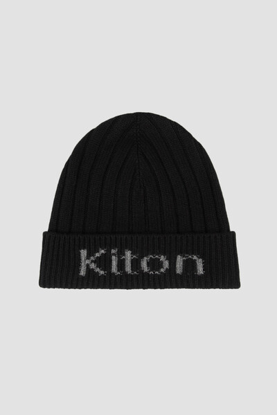 Шапка бини от бренда Kiton дополнит повседневные образы с курткой, пуховиком или пальто. Изделие связано из кашемировой пряжи и оснащено широким отворотом, выступающим дополнительным барьером для порывов ветра. Характерными особенностями аксессуара стали фактурный геометрический узор на поверхности и наличие крупного знакового декора - надписи-логотипа спереди по центру.