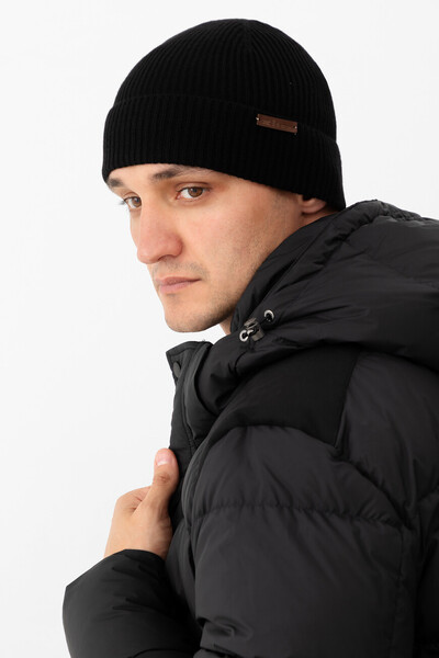 Чёрная бини Kiton с широким отворотом. Для пошива изделия был выбран 100% кашемир: мягкий материал отлично сохраняет тепло и тактильно приятен. Классическая вязка добавляет динамики изделию, а лаконичный патч с логотипом бренда из натуральной кожи выступает отлылкой к Дому. Повседневная модель в базовом оттенке удачно впишется в любой гардероб.