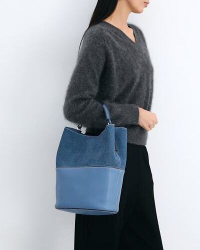 Сумка-торба FURLA Sfera в комбинированном дизайне выполнена из гладкой кожи и мягкой замши с отделкой под деним. За счет короткой ручки с фирменной фурнитурой Sfera и съемного регулируемого ремня на плечо модель можно носить любым удобным способом. Изделие застегивается на магнитную кнопку. Украшено логотипом бренда. В комплект входит съемный клатч из кожи с застежкой на молнию.