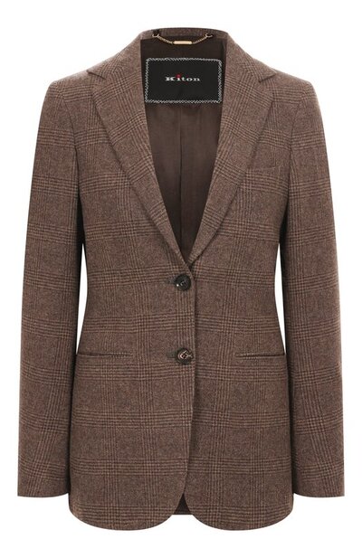 Однобортный пиджак в клетку гленчек составит элегантный образ с парными брюками. Модель на атласном подкладе сшили из шерсти с добавлением кашемира и полиэстера. Изделие со шлицей сзади и тремя карманами застегивается брендированными пуговицами.