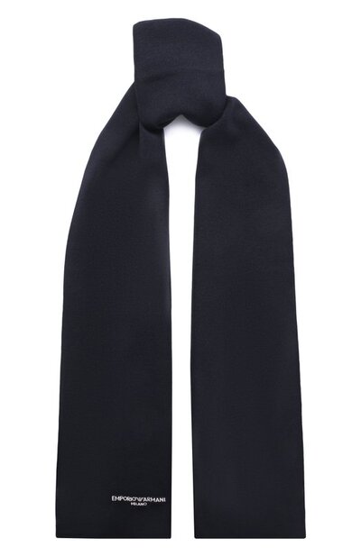 Шарф изготовили из шерстяного трикотажа с добавлением нейлона. Аксессуар украсили патчем с контрастным вышитым логотипом.