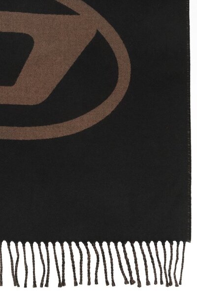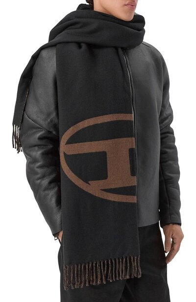 Широкий двусторонний шарф S-Tevie с эмблемой Oval D выполнили из шерсти первого пострига с добавлением полиакрила и нейлона. Края модели с фирменным брендированным ярлыком сбоку украсили витой бахромой.