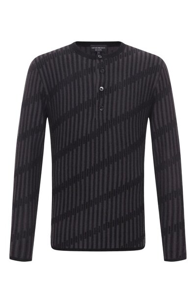 Джемпер с полосатым мотивом выполнили из шерстяного трикотажа с добавлением вискозы и нейлона. Модель с короткой пуговичной планкой включили в капсулу Icon.