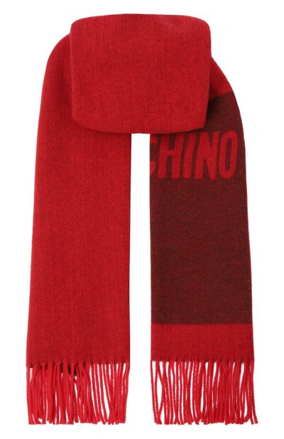 Для изготовления широкого шарфа использовали ткань из чистой шерсти. Аксессуар с длинной витой бахромой на концах декорировали крупным жаккардовым логотипом.