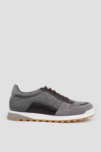 Оригинальные кроссовки Isaia, воплотившие в себе филигранное сочетание материалов. Для создания изделия использовали меланжевый текстиль, а для укрепления и отделки – натуральную кожу и мягкую замшу контрастных цветов: серого и коричневого. Закрытая перекрестная шнуровка и кожаные вставки создают элегантный силуэт. Двухцветная резиновая подошва с глубоким протектором обеспечивает уверенную посадку на любой поверхности, а узнаваемая коралловая ветвь на пятке служит фирменным акцентом бренда.