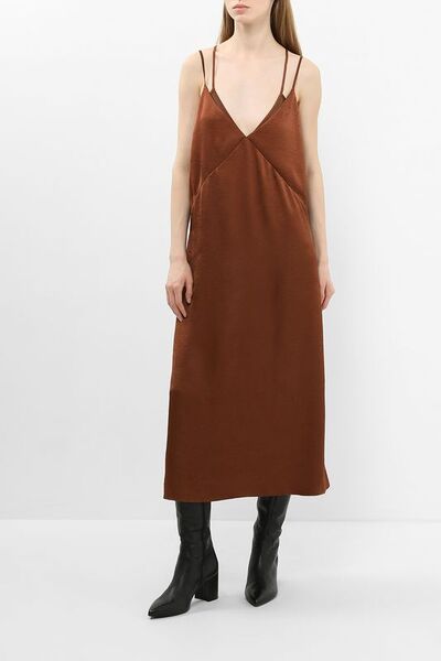Платье на бретелях из жатого атласа Boss by Hugo Boss 7068813 (коричневый, lpn30884924)