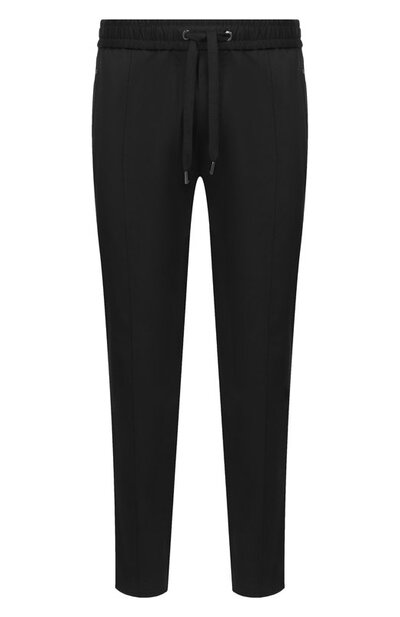 Брюки с простроченными стрелками выполнили из хлопка стрейч. Модель с эластичным поясом-кулиской и двумя парами карманов дополнили фирменной двухслойной пластиной сзади.