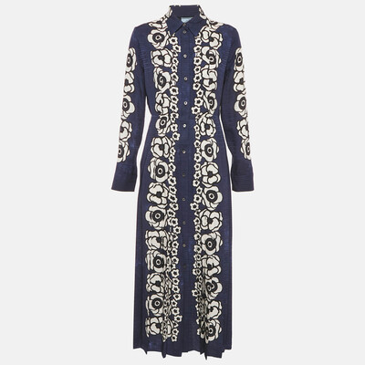 This satin silk dress from Prada blooms with a delicate floral print and features pleating that flows into a graceful long silhouette. Its a refined nod to the brands love for classic femininity.