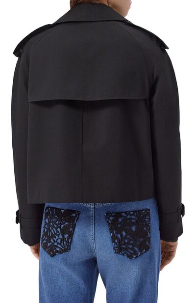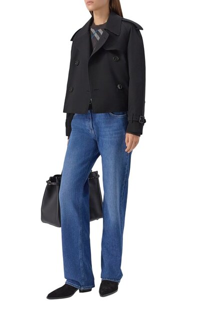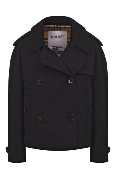 Двубортный кроп-тренч с отлетной кокеткой, ружейным клапаном и погонами сшили из хлопкового габардина с водоотталкивающей обработкой. Модель кроя Relaxed fit дополнена подкладом в клетку Burberry Check и двумя боковыми карманами.