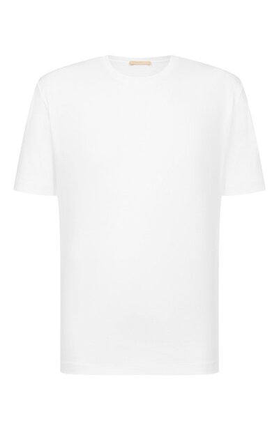 Футболка прямого кроя удачно дополнит базовый гардероб. Для изготовления модели с круглым вырезом использовали гладкий трикотаж из мерсеризованного хлопка пима.