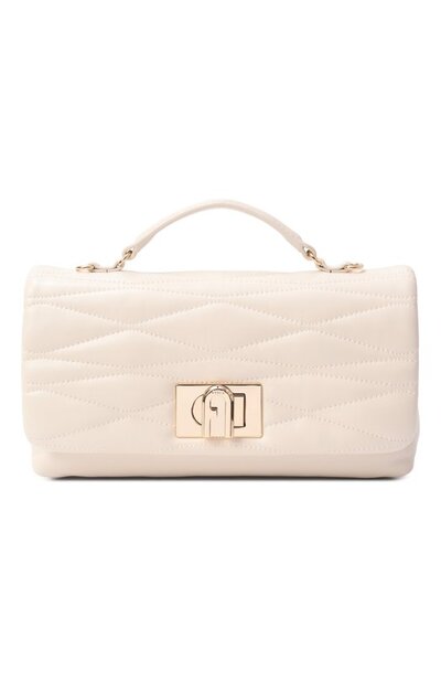 Сумку 1927 Soft с одной ручкой и съемным ремнем-цепочкой с мягкой вставкой выполнили из мелкозернистой кожи. Модель с волнистым стеганым узором закрывается клапаном на поворотный замок в виде эмблемы Arch. Внутри – три слота для карт.