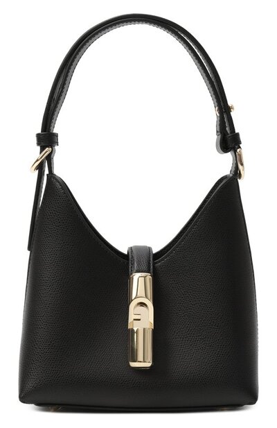 Сумку Iride с регулируемой ручкой и металлическими пуклями сшили из тисненой кожи. Аксессуар с внутренним карманом на молнии дополнили ремешком с магнитной фурнитурой в виде эмблемы Arch.